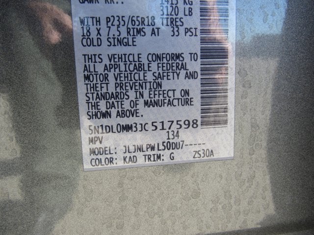- Tires: 235/65R18 All-Season T-Rated